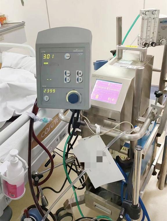 CCU团队评估认为,建议立刻启动ECMO(体外膜肺氧合)救治,让心脏得到休息。“像这种心源性休克的病人,死亡率超过50%,再这样恶化下去,呼吸心跳随时可能停止,患者的病情已达到可以使用ECMO的标准,用ECMO暂时替代患者心肺功能,为危重症的抢救赢得宝贵的时间。”CCU揭英纯副主任医师提到。